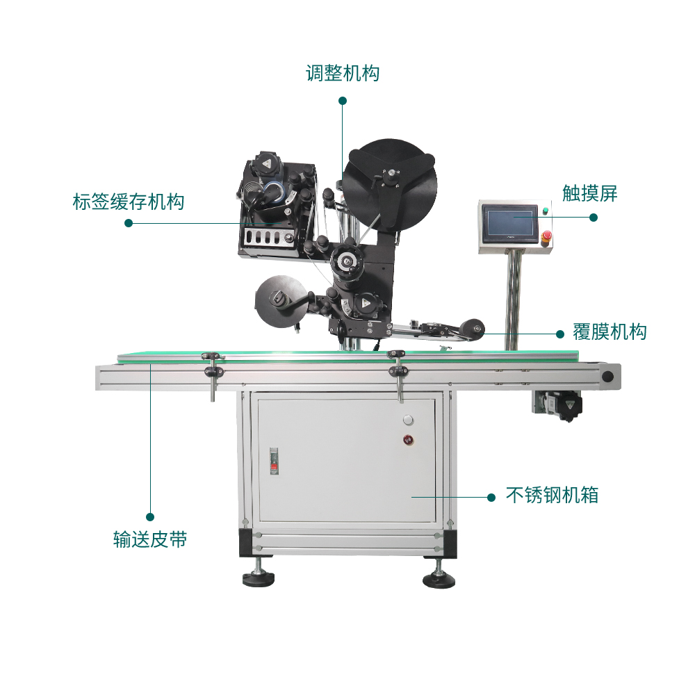 适用于在各种物品的上平面贴标签或不干胶膜,如书本、文件夹、盒子、纸箱等,更换覆标机构可适用于不平整表面贴标,广泛应用于大件产品的平面贴标,规格范围大的平面类物体贴标。