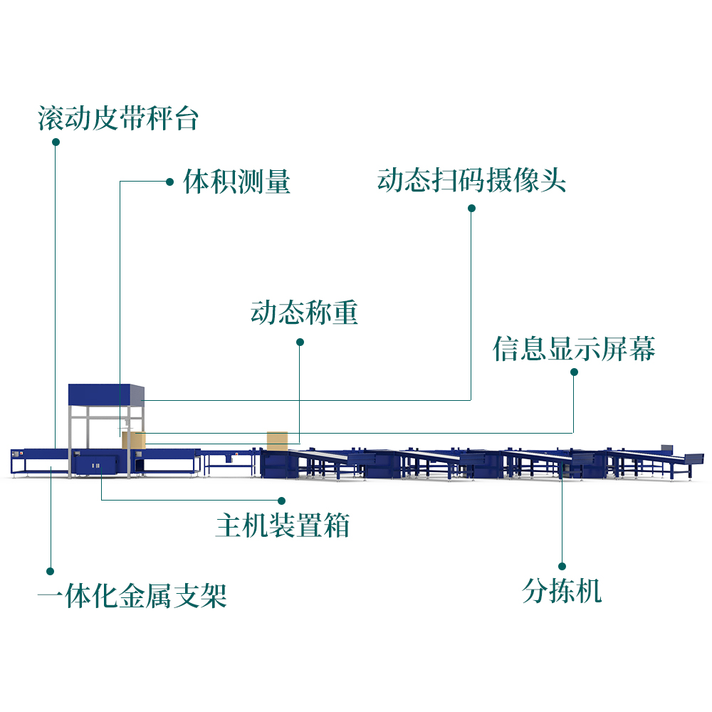 dws动态+9分拣设备可以直接对接流水线,可以在线完成扫描、称重和体积测量,通过软件把条码、重量、体积等信息绑定上传至后台服务器,扫描后直接输送到原有主输送带上,可以大大降低人工劳动强度,提升工作效率。