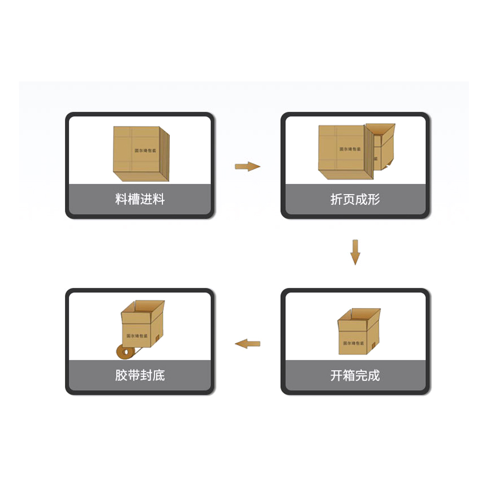 引进吸收日本德国先进技术制造,选用进口零部件,电器元件及气动元件纸箱储存采用卧式,可随时补充纸箱板,不需停机.自动预警提醒补充纸箱.